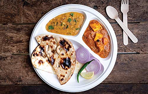 - USED FOR: LUSKA Sugarcane paper plates are the best disposable dinner plates for dining at home, parties and formal events. They are sturdy and 100% natural and biodegradable, which makes them an ideal choice for those who care about the environment with no compromise on performance. Use for snacks, breakfast, lunch, dinner at home or party events. The compartment plates have sections or partitions which allow you to experience dining with style, with separate compartments for different dishes.