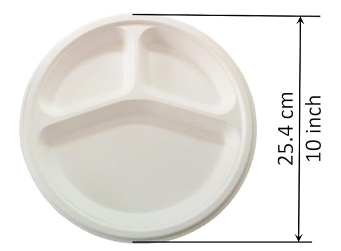 - The packet contains 25 count of 10 inch 3 compartment round plates packaged well to be carried easily.