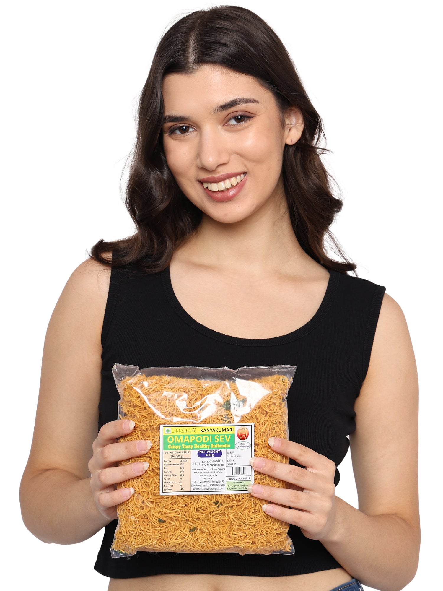 LUSKA Kanyakumari Crispy Delicious Omapodi Thin Sev Namkeen snack | 400 grams | Traditional South Indian Sev | Besan Sev | Mora Sev | Bhujiya | Bhel Puri Sev | Zero Cholesterol